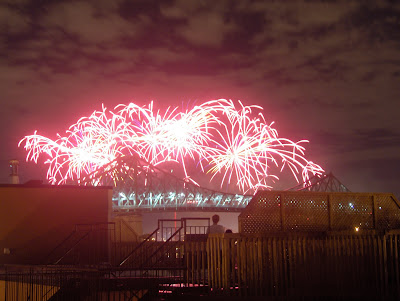 Ok, well. The fireworks tonight WERE an improvement over last Saturday's, but well, then so would throwing a few sparklers up into the air...